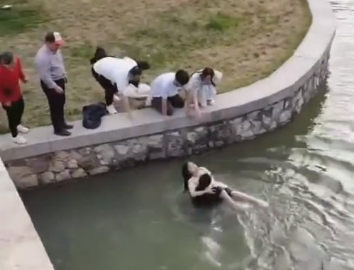 黑衣男子奋不顾身跳水营救