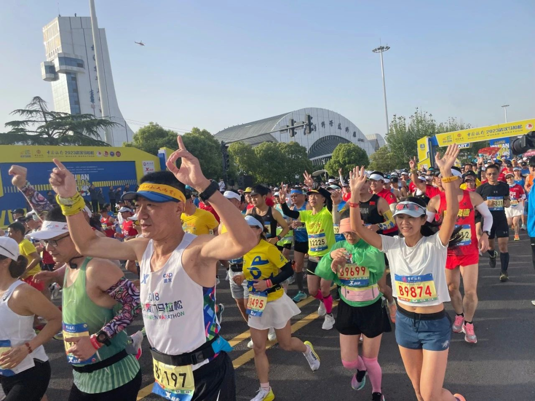 中国选手何杰夺得2023年武汉马拉松全程项目的冠军成绩约为2小时12分35秒亚军是杨绍辉,第三名是董国建中国选手包揽前三名
