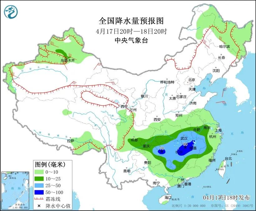 中央气象台预计,17日20时至18日20时,新疆北部和沿天山高海拔地区、西藏南部、内蒙古东北部、黑龙江西北部等地部分地区有小到中雪或雨夹雪,其中,新疆阿勒泰山区和沿天山高海拔地区有大雪或暴雪;重庆南部、贵州东北部、湖北中南部、湖南大部、广西东北部、安徽南部、江西中北部、浙江西南部、福建西北部等地部分地区有中到大雨,其中,湖南中北部、江西西北部等地局地有暴雨。