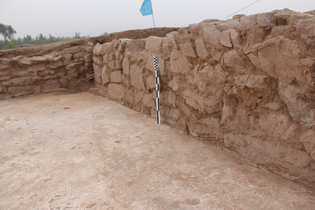 这是碧村遗址上的石砌房址(局部)。为建造核心建筑,碧村先民有规划地从山下采石,运往山上砌筑城池。他们在裸露的石墙表面涂抹约10厘米厚的草拌泥,并在地面铺设厚实的白灰,增加高等级建筑室内居住的舒适度。在修建城门、宫殿等大型建筑时,碧村先民还有组织地从外地运输大量黏性较强的褐土,夯筑墩台和土坯墙体。“这表明城址主人有强大的社会组织和协调能力,对建造这座石城非常重视。”张光辉说。