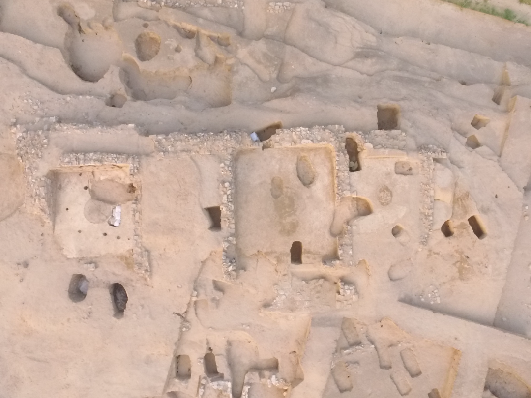 这是小玉梁地点高等级核心建筑遗迹航拍图。建筑等级性还体现在,大型连间石砌房址秩序井然,以其中一座房址为中心,两侧房址依次向西缩进式分布。墙体、灶址规划与所属房址面积成正比,等差设置。例如,中心房址内灶址直径为2.6米,两侧房址内灶址直径在1.7米左右。除核心建筑外,外城门也体现出明显的“以中为尊”的建造思想。外城门南北对称,城门内两座瓮城中轴对称。“这些大型建筑承袭了早期高等级围墙院落中轴设计的思想和布局,并延伸出一门多道门址配置方式,奠定了早期宫殿建筑的基本模式。”张光辉说。多学科研究表明,因交通便利等原因,4000多年前碧村先民在此聚集,形成了粟为主、黍为次、大量养殖猪羊牛的农业经济,为其扩土建城打下良好基础。公元前2200年至公元前1700年间,碧村遗址核心区小玉梁地点经历了由初兴到衰落的聚落变迁。最初小玉梁建筑为一组南向土构房址,但在鼎盛阶段被废弃,取而代之的是一批与地形走向一致的西向石构建筑群。“先民们为了扩展居住范围,形成更大活动空间。”张光辉说。