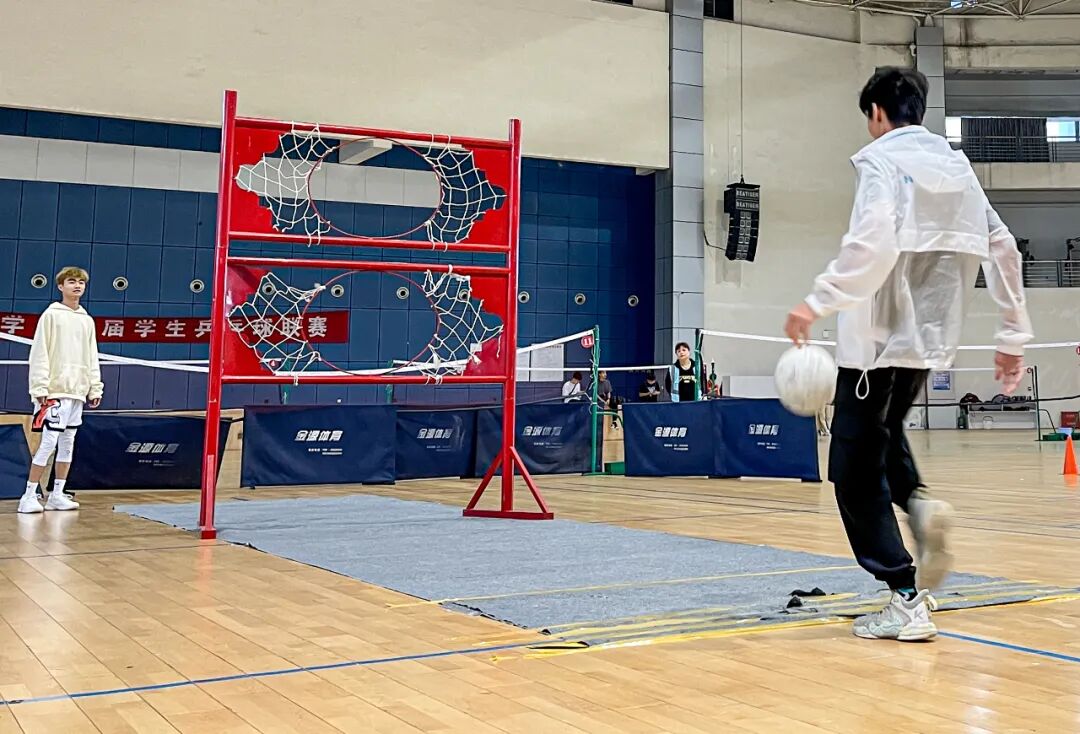 2022年5月17日,在四川大学江安校区,学生体验传统体育运动蹴鞠。