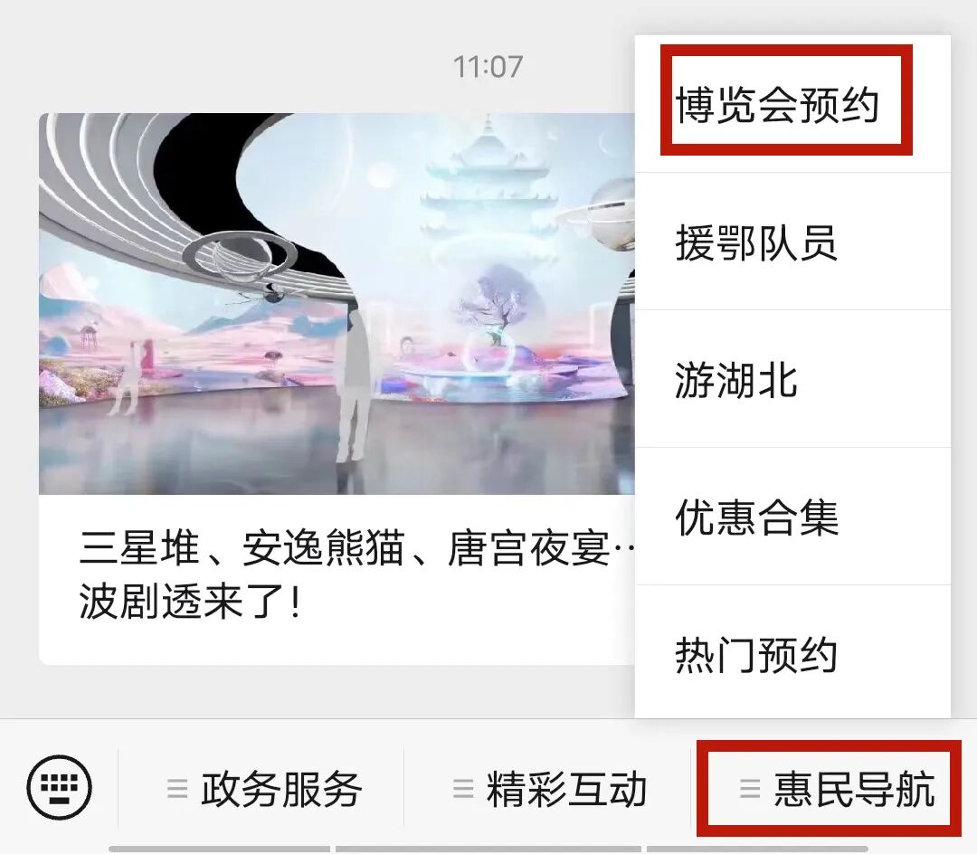 关注【武汉文化旅游博览会】官方微信公众号(微信号ccte_wuhan),点击主页菜单“观展预约”,按提示进行预约操作。