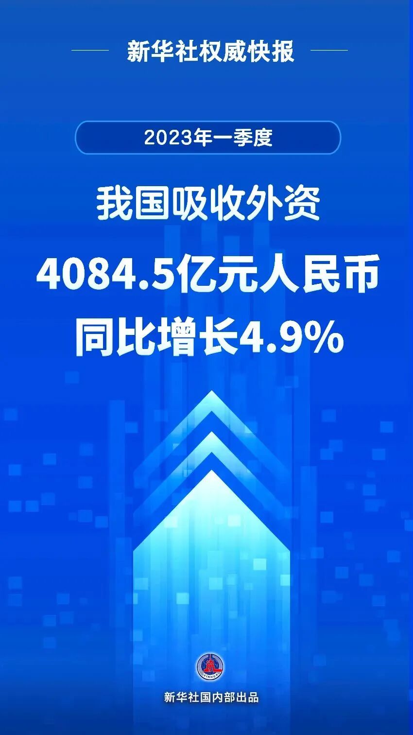 商务部最新数据显示,今年一季度,全国实际使用外资4084.5亿元人民币,同比增长4.9%,吸收外资实现了“开门稳”。