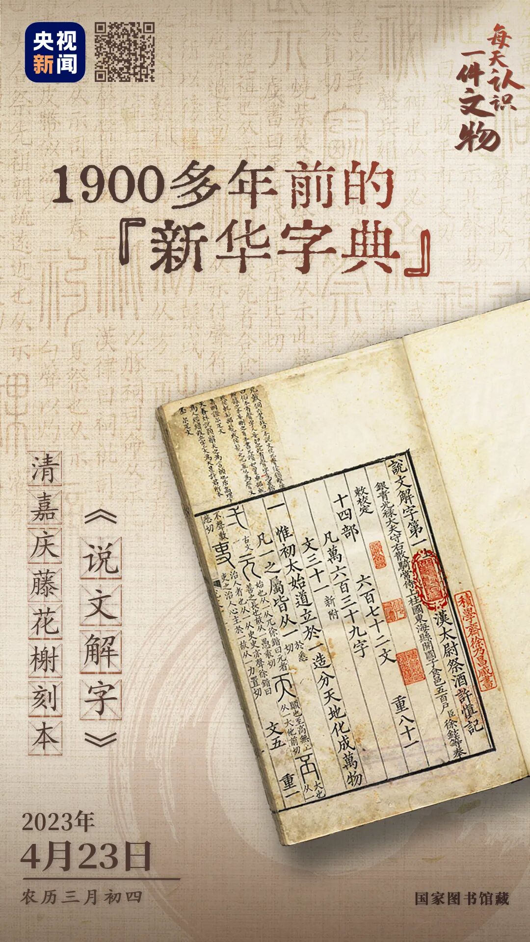 央视新闻联合全国博物馆推出文博科普产品《文博日历》,每天带您认识一件文物。今天(23日)是世界读书⽇。要读书先识字,字典是识字“必需品”,那么,我国第⼀部字典是什么时候出现的,又是谁编写的?长按识别图中二维码,即可预约参观↓