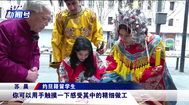 约旦籍留学生苏晨被刺绣所吸引,“它是用丝绸做的,做工非常精细,你可以用手触摸一下感受其中的精细做工。”