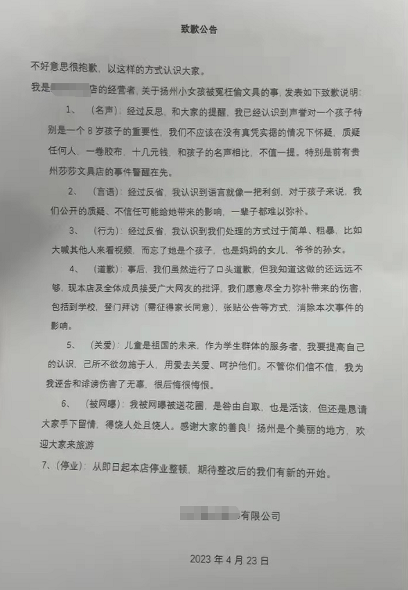 4月23日,一则文具店被指污蔑小孩偷东西的新闻,引发网友关注。