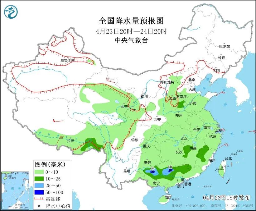 中央气象台预计,23日20时至24日20时,西藏东部和南部、青海东部、甘肃南部、山西中南部等地部分地区有小到中雪或雨夹雪,其中山西东南部局地有大雪;西藏东南部、广西中北部、广东北部、江西西部、福建西北部等地部分地区有中到大雨,其中,广西西部和东北部等地局地有暴雨。