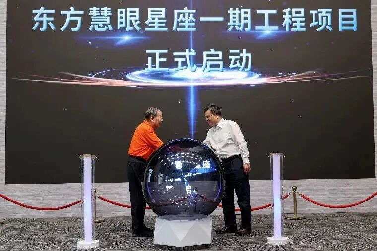 武汉大学校长张平文、武汉大学教授李德仁一同启动东方慧眼星座工程项目。金鑫 摄01拿着手机能“刷”卫星