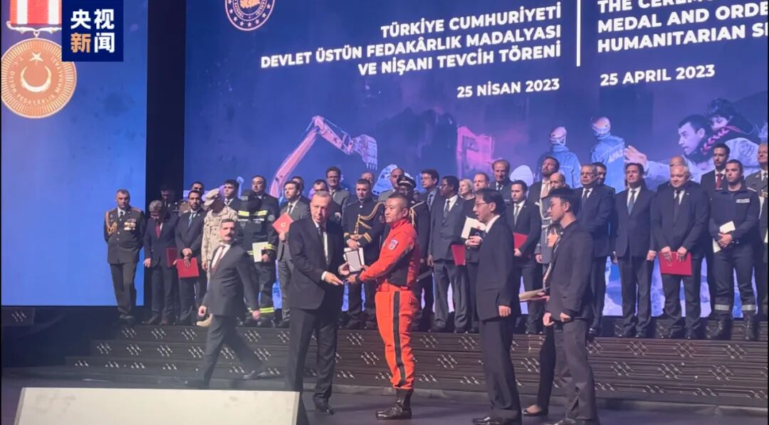 25日,中国救援队获土耳其“共和国崇高贡献奖章”。