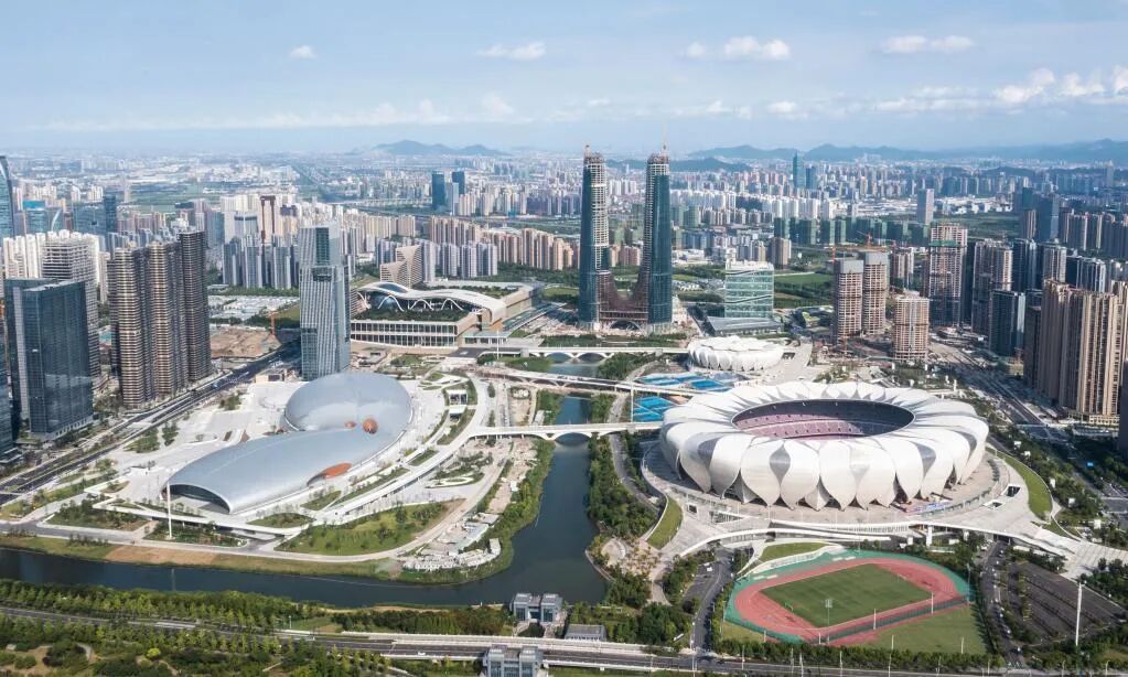 △本次会议为期3天,杭州亚组委向各参赛奥委会详细介绍筹办进展,发布最新的参赛政策及有关信息。图为杭州奥体中心场馆群。