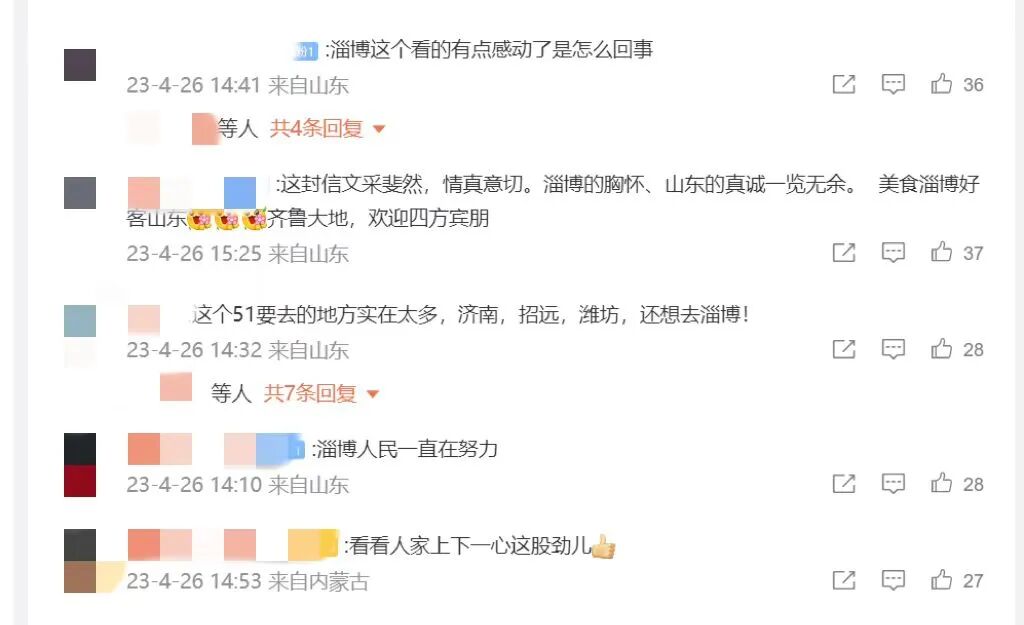感谢了大家对淄博“人好物美心齐”城市印象的“鼓与呼”