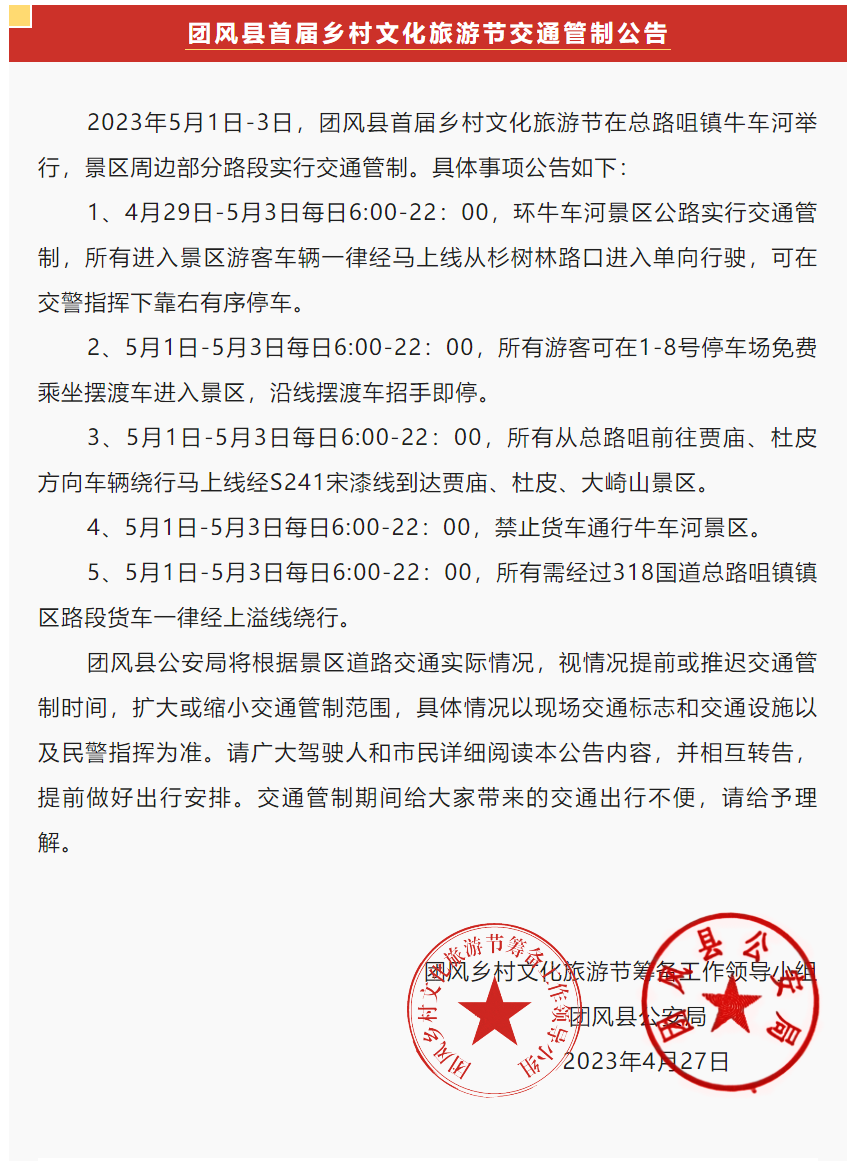 团风县首届乡村文化旅游节交通管制公告