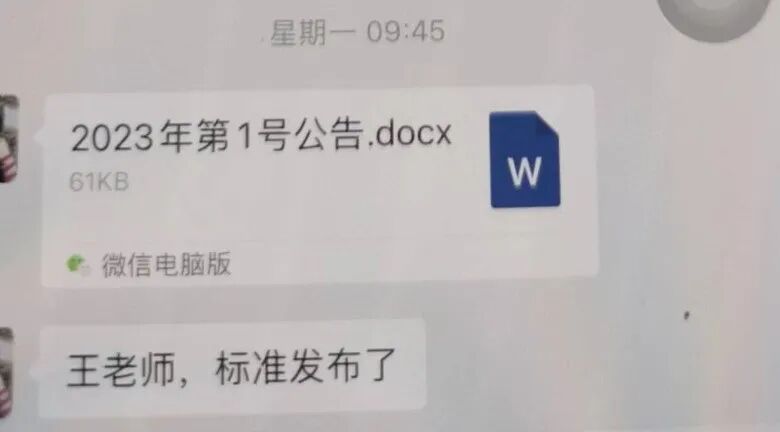 “王老师,标准发布了”。