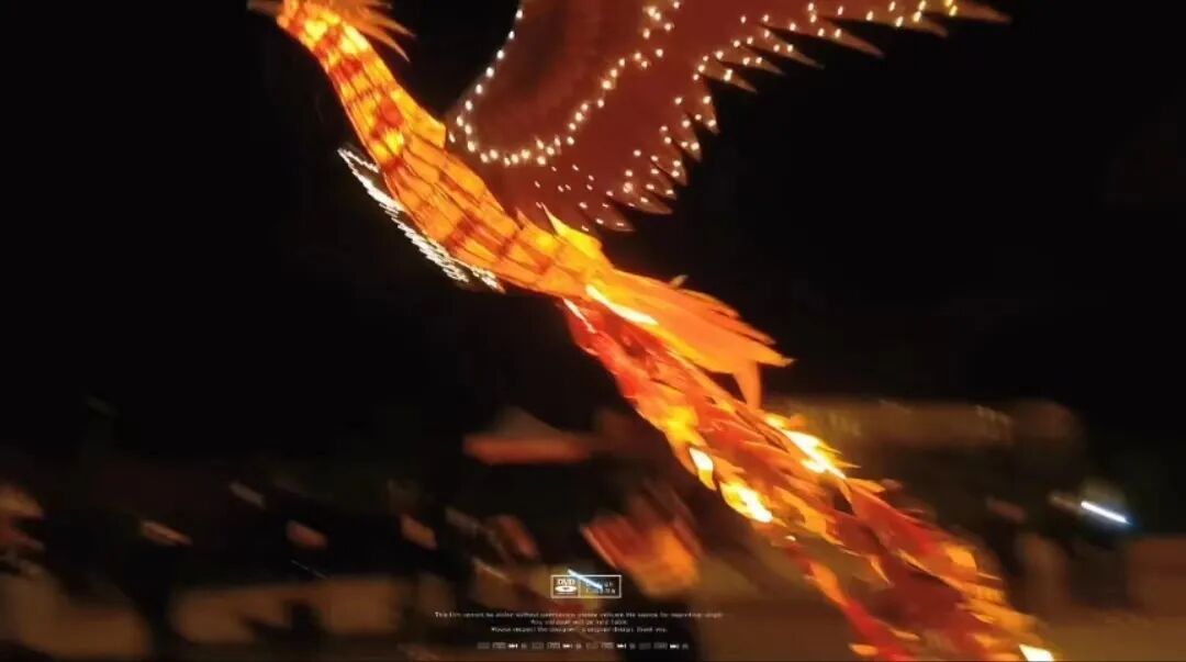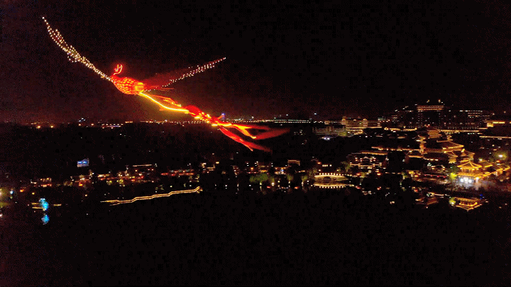当夜幕降临,一道红光划破黑暗,“金凤凰”身披金光,大展双翼,凤翎飘逸,一飞冲天……