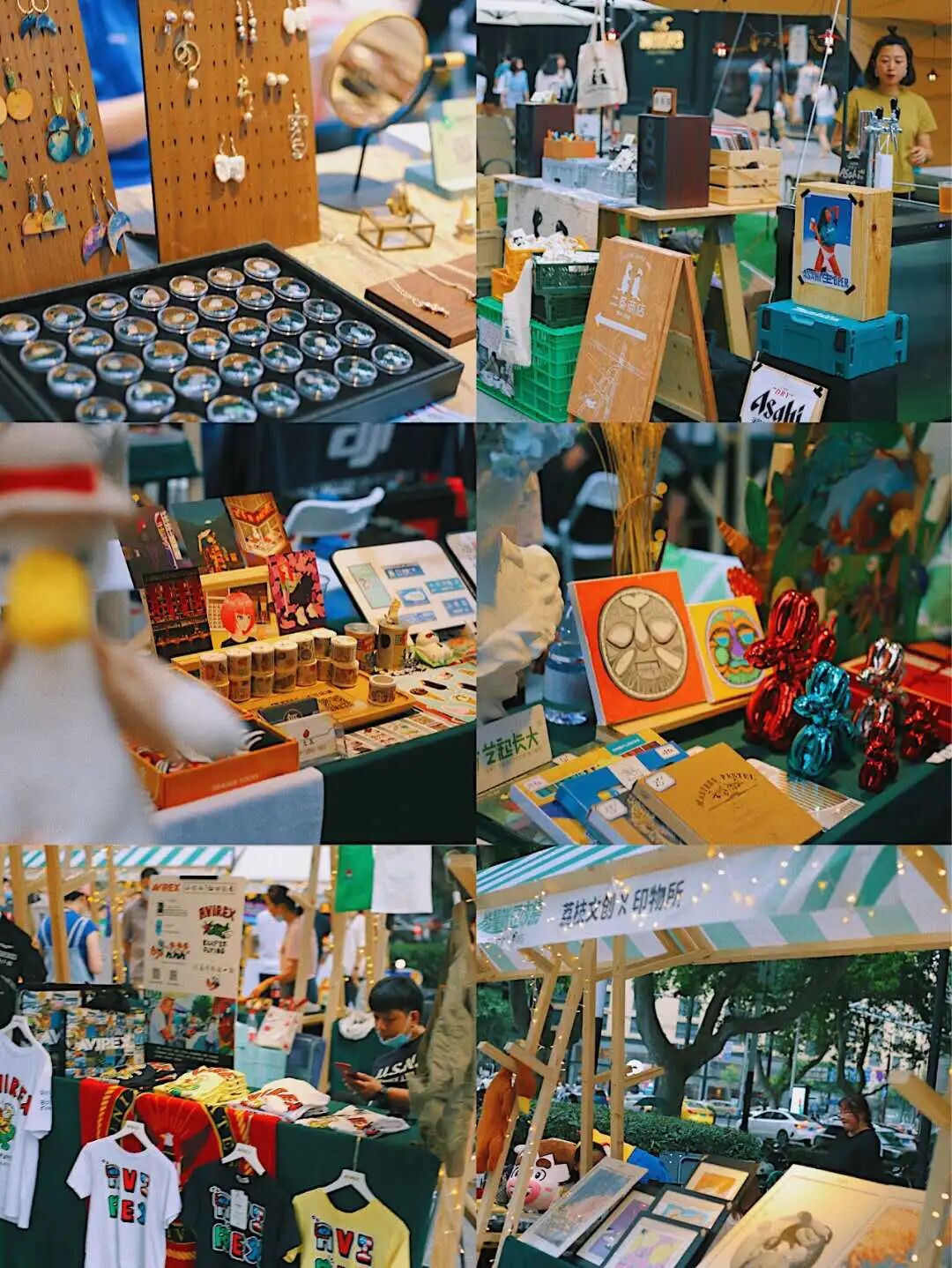 各式各样非遗手工和创意作品,温度手作、吉他民谣……一个个创意小摊子包罗万象。