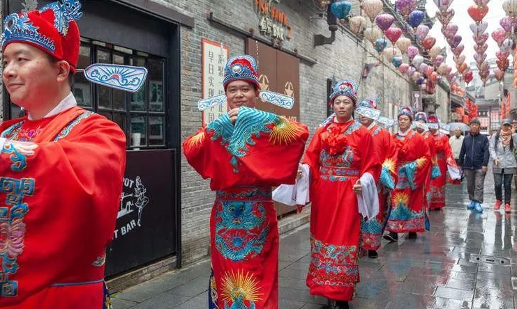 4月29日,由市政府举办的《麻城不夜城》开幕当天,将邀请若干青年,身穿不同朝代的进士服装,在麻城城区主干道表演“进士衣锦还乡”大型沉浸式演艺秀,让广大市民亲自体验麻城的进士文化,感受千年传统民俗活动的氛围。