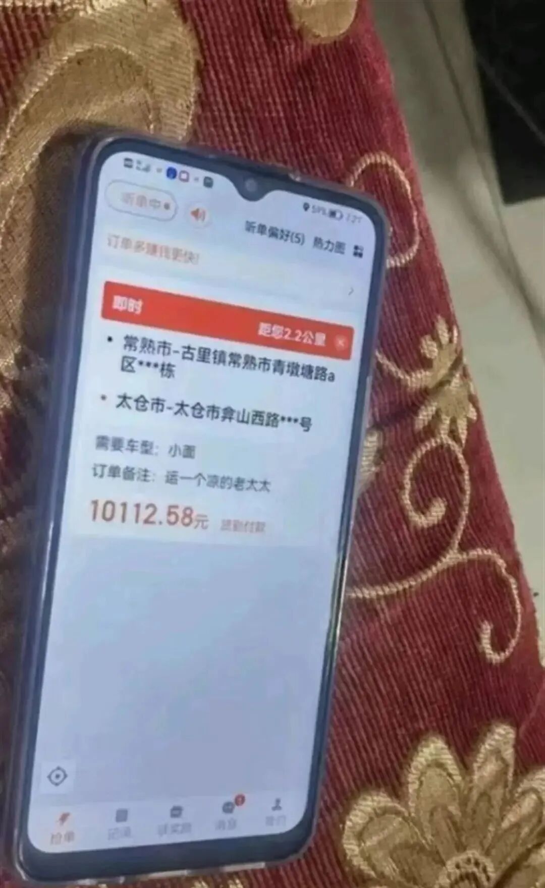 网友发布的视频显示,需要从江苏苏州常熟古里镇青墩塘路a区某栋楼运送一单至苏州太仓市弇山西路的太仓市某电子材料公司,价格约为10108元,货到付款。客户需求除了提到“小面”车型外,还备注称“运一个凉的老太太”。
