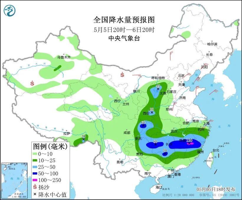 中央气象台5日18时继续发布暴雨蓝色预警和强对流天气蓝色预警,预计5日20时至6日20时,湖南南部和西部、江西南部、贵州中东部、广东西北部等地的部分地区将有8—10级雷暴大风或冰雹天气;湖北西南部、湖南、江西、浙江南部、福建西部和北部、重庆东南部、贵州中东部、广西东北部、广东北部等地的部分地区将有短时强降水天气。