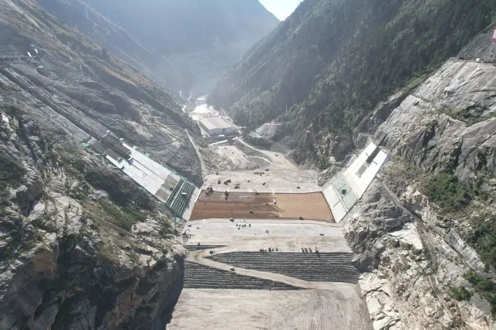 位于四川省阿坝州的世界级高坝——双江口水电站大坝填筑至百米高度。