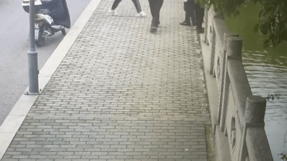 是这位路过的爷爷跳入河中