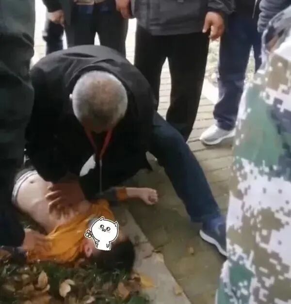 掌握急救技能的59岁退伍老兵殷高仁和71岁退伍老兵孙刚