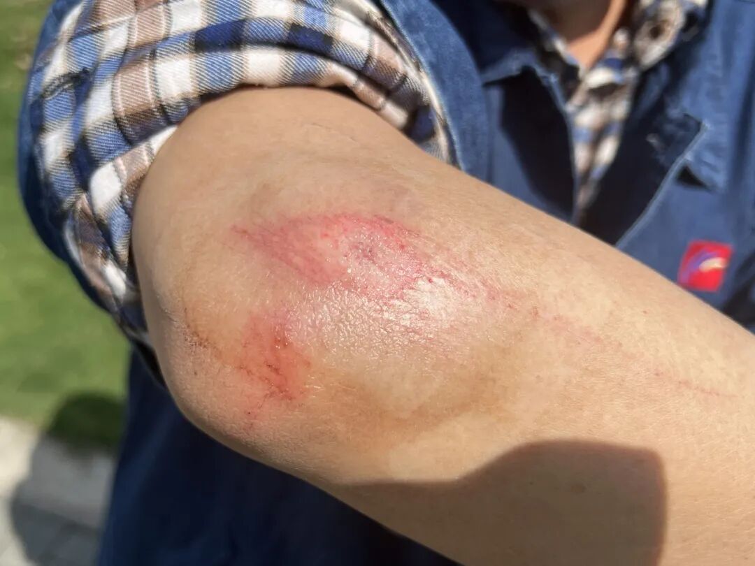 他的手臂擦伤了一大块