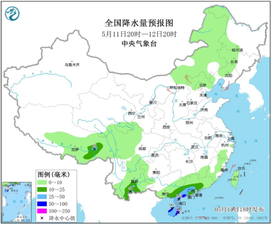 中央气象台预计,11日20时至12日20时,西藏东南部、云南南部、华南南部等地部分地区有中到大雨,其中,广东西南部沿海、海南岛东部和西北部等地部分地区有暴雨或大暴雨。国家防总于11日18时启动防汛四级应急响应。
