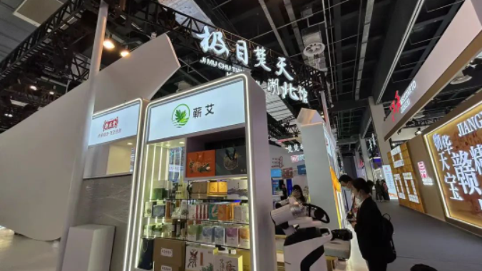 2023年中国品牌日活动开幕,位于湖北馆的蕲春蕲艾展区有蕲艾灸贴、艾条、蕲艾眼罩、蕲艾精油等20个系列,200多款蕲艾产品亮相,向全国乃至世界展现蕲艾品牌发展力量。