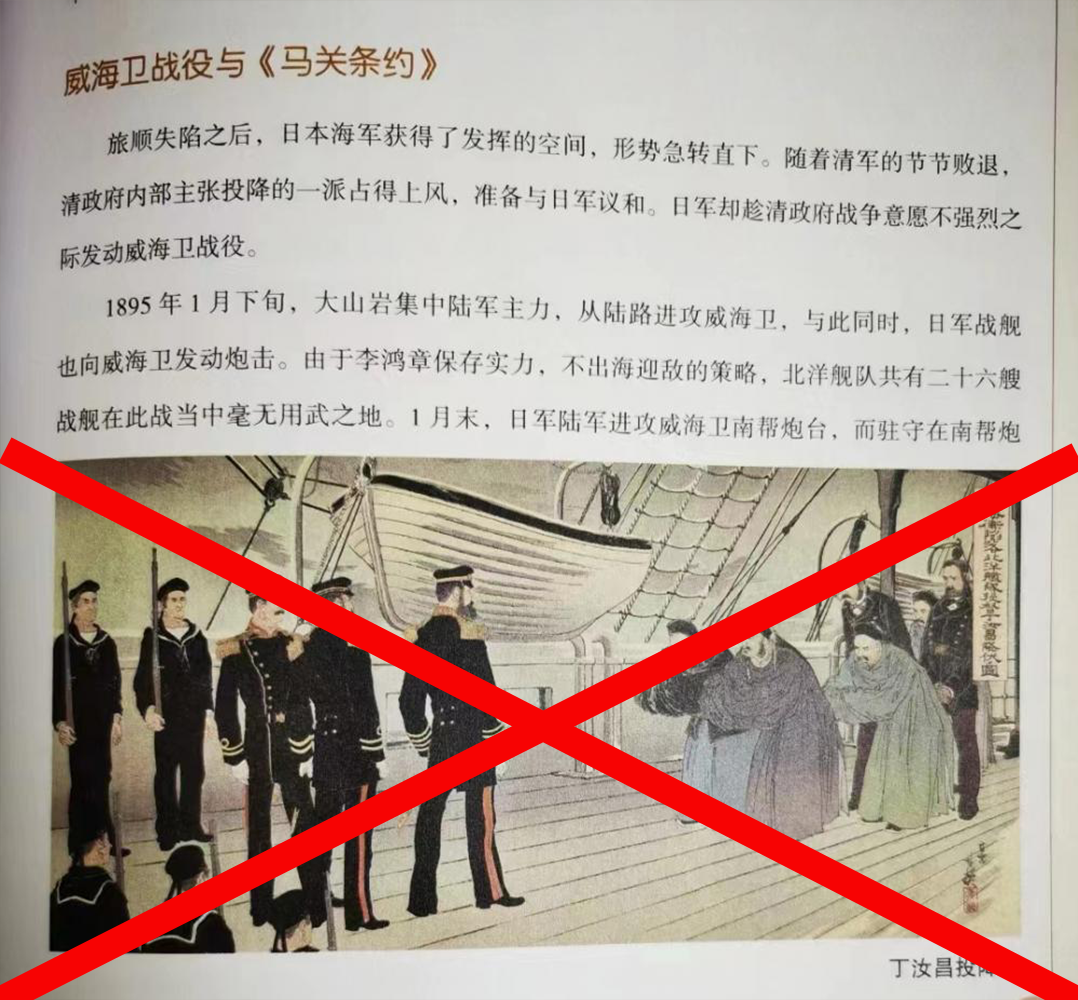 近日,有网友发现,自己给孩子买的历史读物中出现事实性错误:在讲述甲午中日海战时,书中用了一张“丁汝昌投降图”。