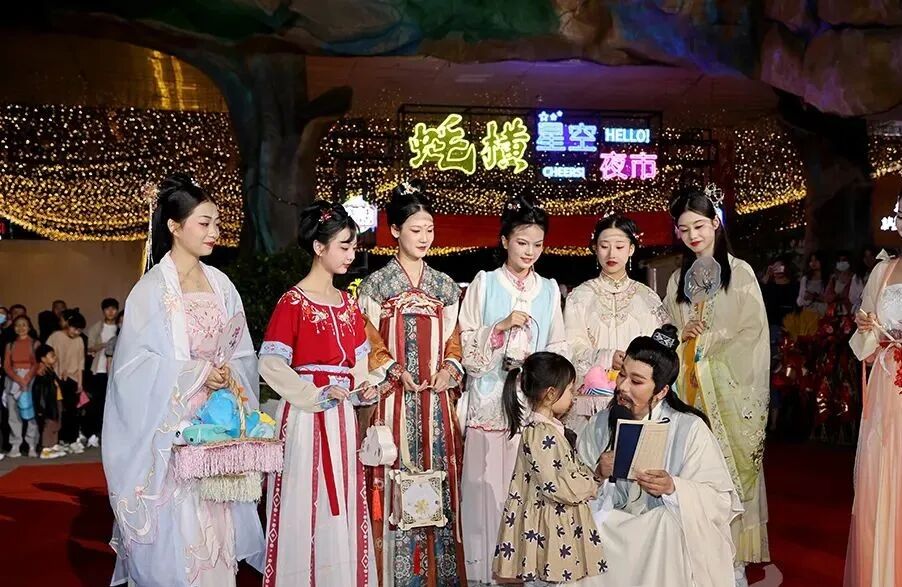 于浪漫街景、人间烟火气的夜市中