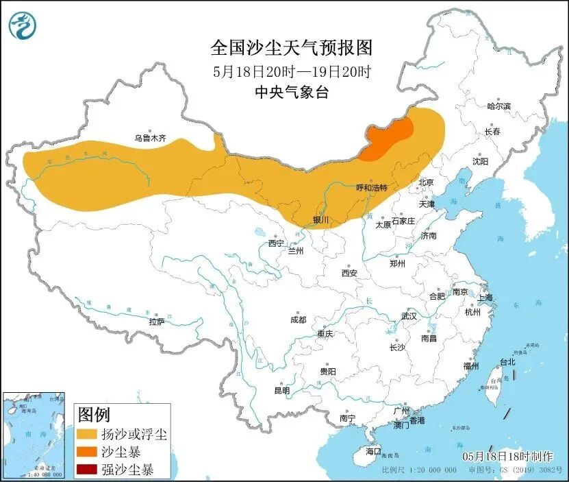中央气象台18日18时发布沙尘暴蓝色预警,预计至19日20时,新疆南部和东部、内蒙古中西部、甘肃西部、宁夏中北部、陕西北部、山西北部、河北西北部、北京西北部等地的部分地区有扬沙或浮尘天气,内蒙古中部偏北地区局地有沙尘暴。