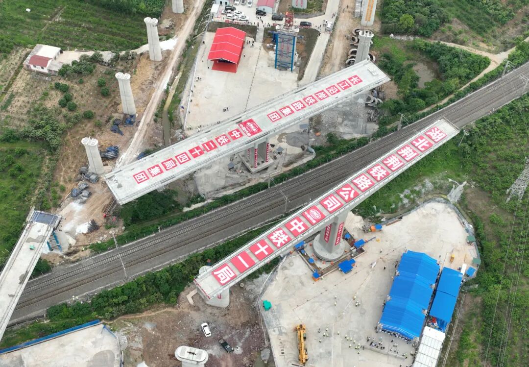记者从中国铁建股份有限公司了解到,18日,由中铁十一局承建的荆荆高铁荆门特大桥转体梁与中铁二十四局承建的沪渝蓉高铁太白集特大桥转体梁,经过70分钟转体施工,成功跨越焦柳铁路,分别实现精准对接。这是全国首次两座不同高铁特大桥同步转体。