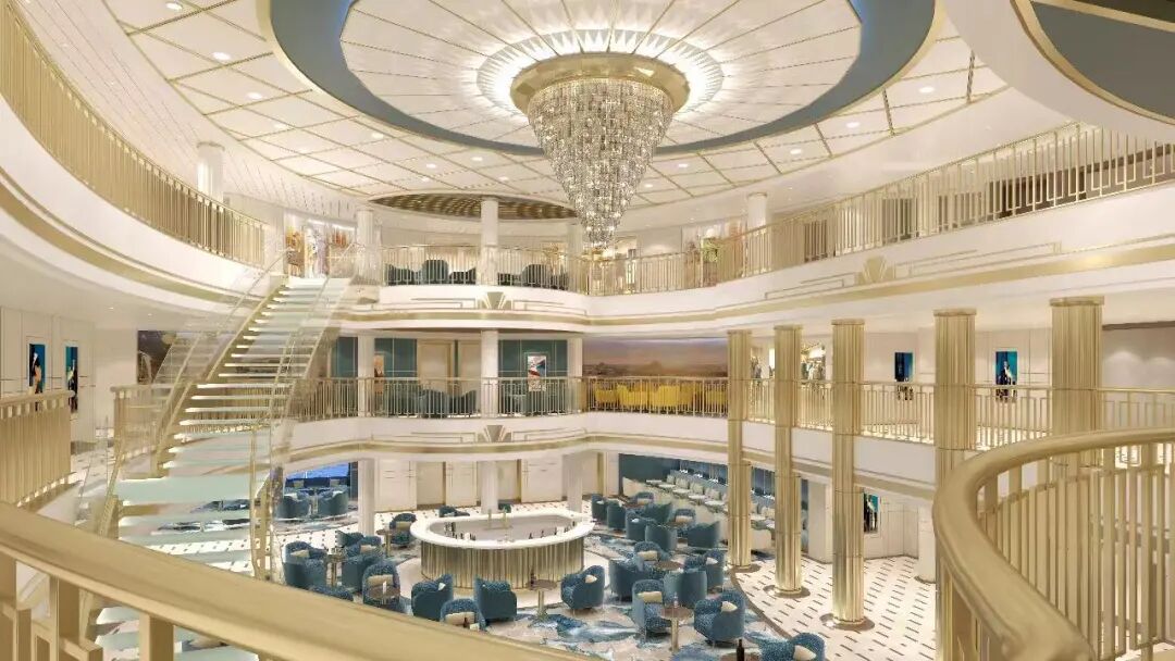 “爱达·魔都”号中庭广场效果图。图片来源:SWS外高桥造船微信