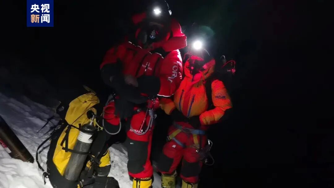△23日凌晨3时03分,科考队从海拔8300米的科考突击营地出发,开始冲顶。