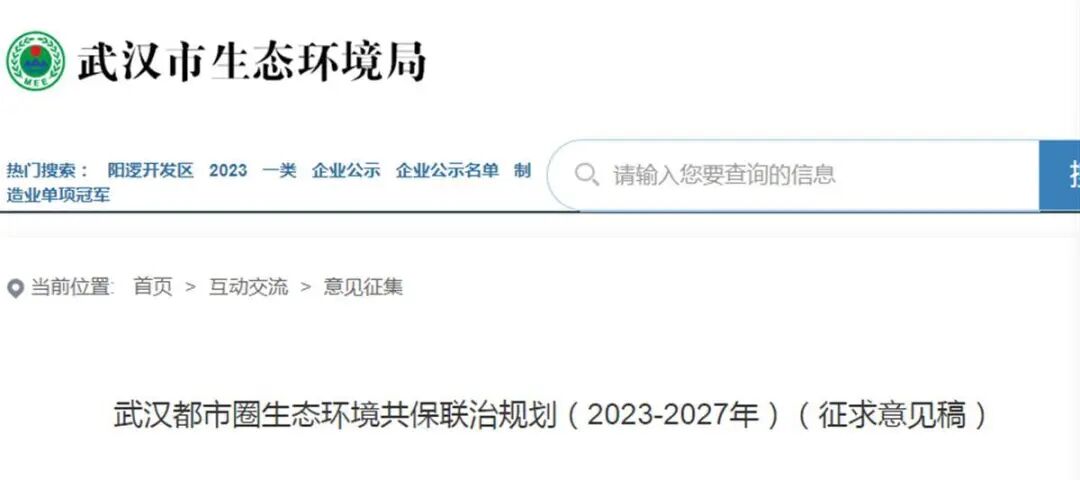 据了解,该通知目前向社会公众征求意见,征集时间至2023年6月14日止。公众有关意见建议,可在武汉市生态环境局官网上留言。纸质信件请邮寄至武汉市江汉区新华路422号武汉市生态环境局政策法规处,邮编:430022,来信请注明“武汉都市圈生态环境共保联治规划建言”。