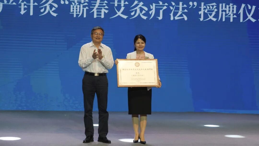 文化和旅游部非遗司领导向蕲春县人民政府授予国家级非物质文化遗产针灸“蕲春艾灸疗法”牌匾