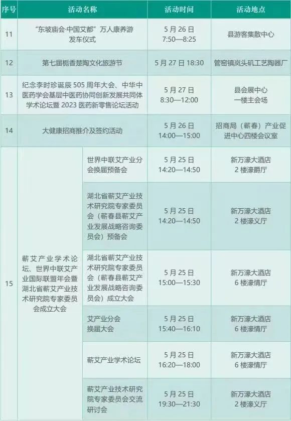 充分挖掘李时珍中医药传统文化,深化国家级非遗“蕲春艾灸疗法”、省级非遗“管窑陶艺”互动体验,开展千人品尝艾粑等民俗活动,充分展示博大精深、底蕴深厚的中医药文化魅力。、
