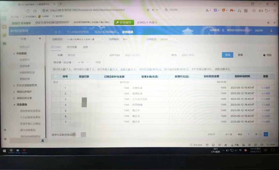 经过各主管部门相互配合,在平台上传2022年度历史发放补贴数据,汇总分析,发现系统运行中存在的问题,及时与工程师进行沟通反馈,优化系统,保证数据全覆盖。目前,该系统累计确认采集人员信息33万余条,已确认金额1亿余元。
