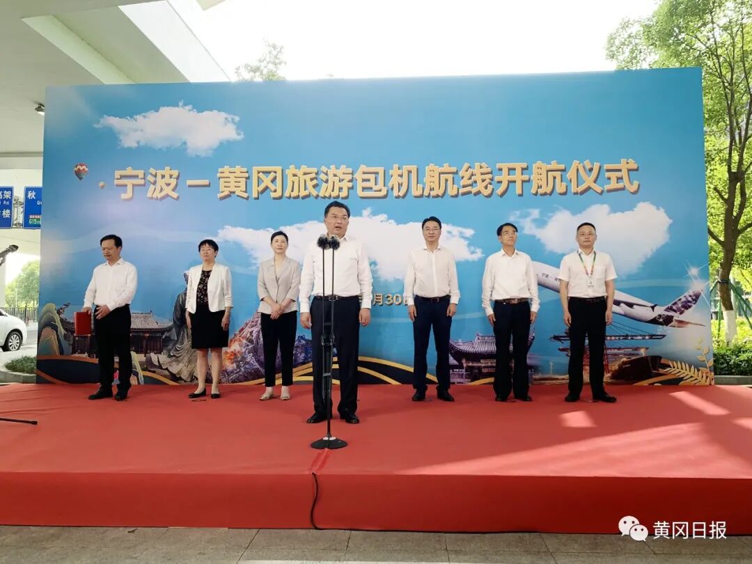 市委书记李军杰宣布“宁波黄冈旅游包机开航”,市委副书记、市长刘洁致辞,市人大常委会党组书记、主任张社教,市政协党组书记、主席洪再林出席,市委常委、常务副市长刘忠诚主持开航仪式,市政协副主席、黄州区委书记夏志东出席,宁波市副市长杨勇致辞。