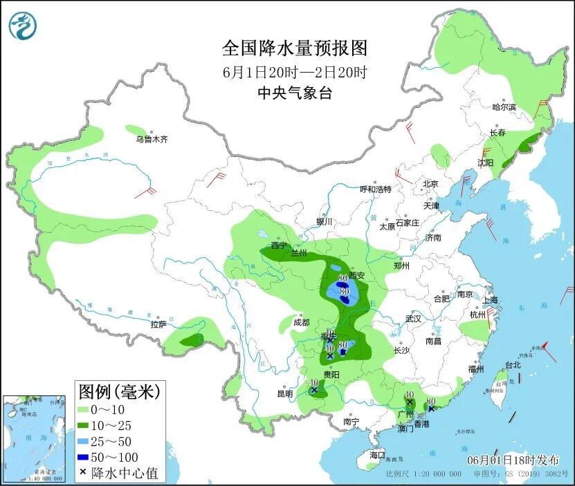 中央气象台6月1日18时继续发布强对流天气蓝色预警:预计6月1日20时至2日20时,吉林东部、青海东部、甘肃南部、陕西南部、湖北西部、湖南西北部、四川东北部、重庆、贵州北部等地部分地区有中到大雨,其中,陕西南部、四川东北部、贵州东北部、广东东南部沿海等地局部地区有暴雨。