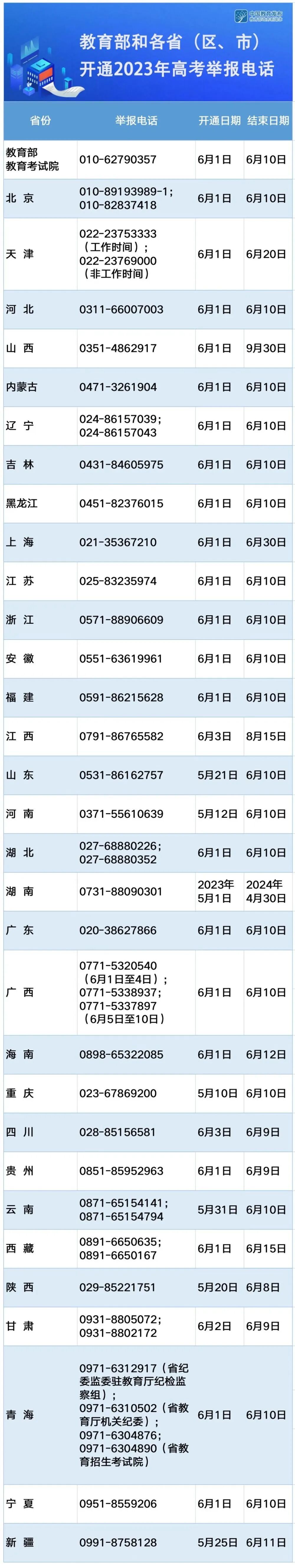 近日,教育部公布2023年高考举报电话,欢迎考生、家长及社会各界人士举报反映涉及2023年高考的问题线索。滑动查看详情↓