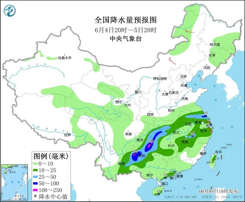 中央气象台预计,4日20时至5日20时,云南中东部、贵州大部、重庆大部、广西西北部、湖南西部和南部、湖北大部、河南东南部、安徽、江苏中南部、江西北部、浙江中部、广东西南部和海南岛等地部分地区有中到大雨,其中部分地区有暴雨或大暴雨。