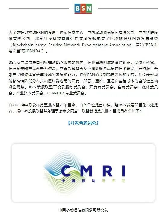 近日,中国移动研究院中移链CMChain团队与区块链服务网络发展联盟(简称“BSN发展联盟”)联手共同助力黑龙江数字政府建设政务区块链平台,由中国移动研究院自研的中移链国密引擎为本项目提供技术支持。该项目的应用实践体现了中移链国密引擎在数据保护、监管合规、安全可信等方面的优势,面向政务行业深耕业务,依托区块链技术推动黑龙江政府服务质量和办事效率进一步提升,构筑“低成本、高品质”营商环境。此外,中国移动研究院已正式加入BSN发展联盟,成为开发者委员会成员单位。