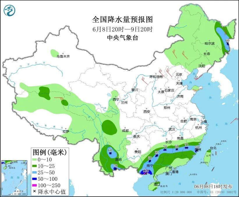 中央气象台8日18时发布暴雨蓝色预警,预计8日20时至9日20时,广西中南部和东北部、湖南南部、江西南部、福建中部、云南北部和南部以及黑龙江东部等地部分地区有大到暴雨,其中,广西南部沿海等地局地有大暴雨。