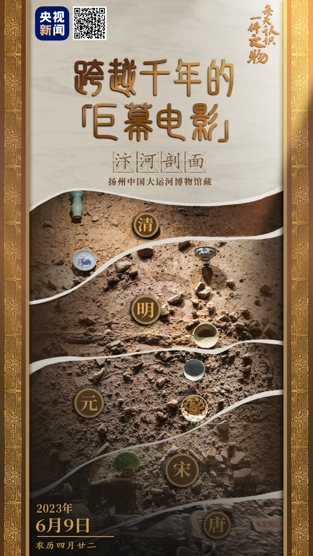 央视新闻联合全国博物馆推出文博科普产品《文博日历》,每天带您认识一件文物。汴河剖面来自开封州桥遗址,是目前国内揭取的体量最大的土遗址剖面,占据了一整面墙,堪比巨幕电影。它不仅面积超大,而且时间跨度长、信息量丰富。⼀层层砂土、⼀件件文物是汴河千年变迁的时间“密码”。
