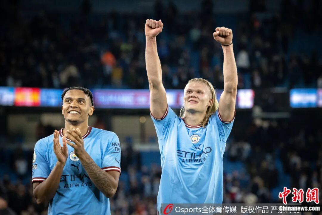 资料图:哈兰德(右)与阿坎吉在比赛中。图片来源:Osports全体育图片社