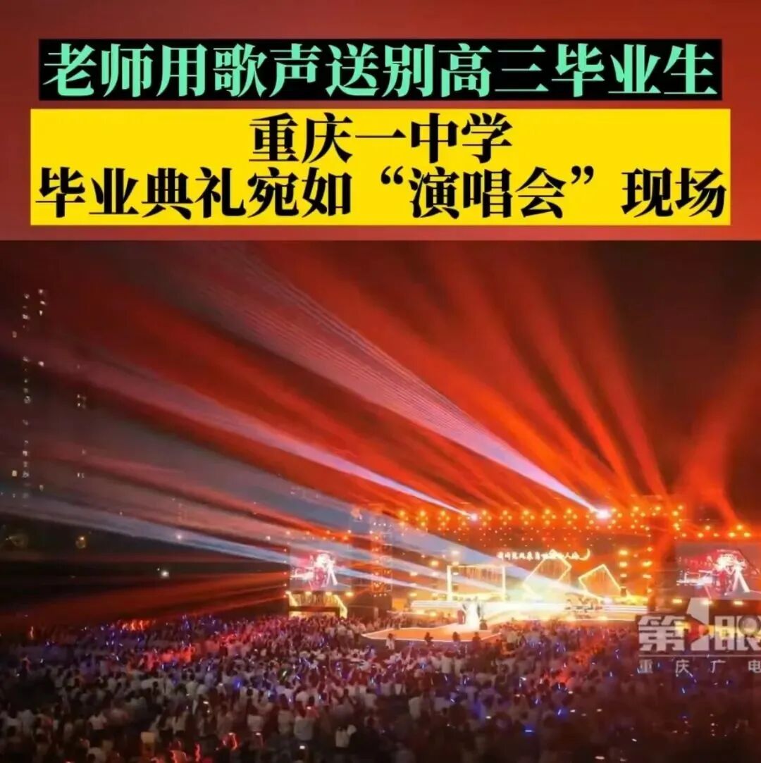 又是一年毕业季。近日,重庆一所中学的毕业典礼宛如演唱会现场,老师们把不舍与祝福融入歌声,送别高三毕业生。网友表示,当骊歌响起,道一声珍重,带着祝福奔赴前方。