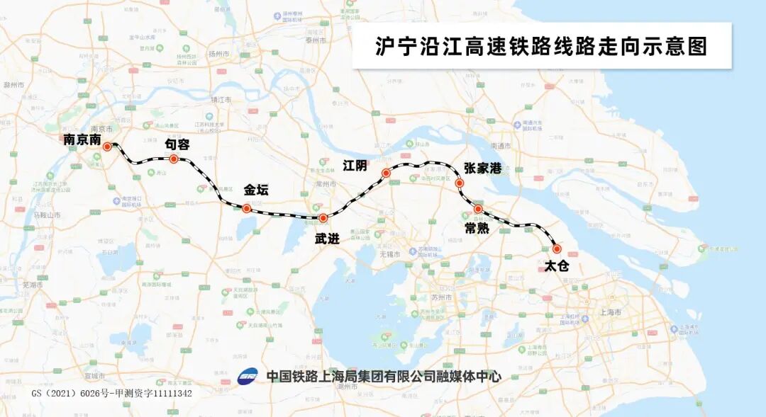 △沪宁沿江高铁线路全长279公里,设计时速350公里。