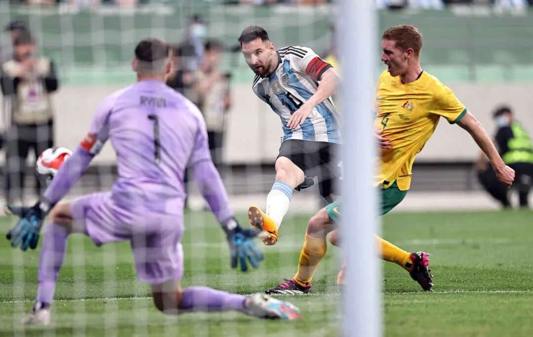 15日,在北京举行的2023国际足球邀请赛上,阿根廷队2∶0击败澳大利亚队。